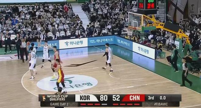 下半场中国男篮在程帅澎带领下进攻有所起色,无奈始终压制不住韩国男篮的火力,以及判罚因素的影响,三节打完52-80,落后多达28分之多。